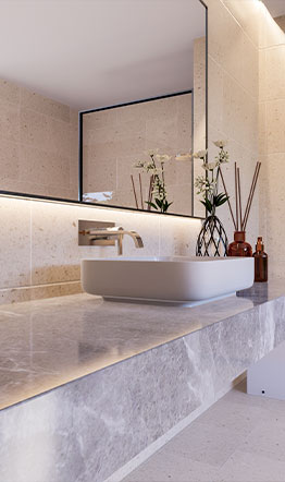 Tres décadas de experiencia nos permiten garantizar que cada proyecto de interior se realiza con atención al detalle y materiales de la más alta calidad, como mármol, granito y cuarzo compacto. Escuchamos tus necesidades y te ofrecemos soluciones integrales que se ajustan perfectamente a tu espacio. Ven a nuestro showroom en Fuengirola y descubre la variedad de opciones que podemos ofrecerte para transformar tu hogar.